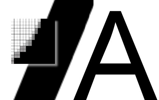 Wenn das A auf dem Drucker ausgegeben werden soll, muss diese Rechenarbeit auch erst gemacht werden. Der Drucker muss dann damit fertig werden. Was so ein moderner Tintenstrahldrucker in kürzester Zeit und mit welcher Präzision leistet, können Sie sich anhand des nächsten Bildes vorstellen.