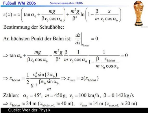 Die Formel dazu nennt isch übrigens ballistische Kurve. Mit ihr kann man ziemlich genau sagen, wo ein Ball die Erde trifft, zum Beispiel.