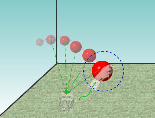 kennen und dann den Ball fangen, wenn er innerhalb dieser Reichweite ist. Dass er dazu eine Menge Gelenke und Motoren in Bewegung setzen muss, ist schon