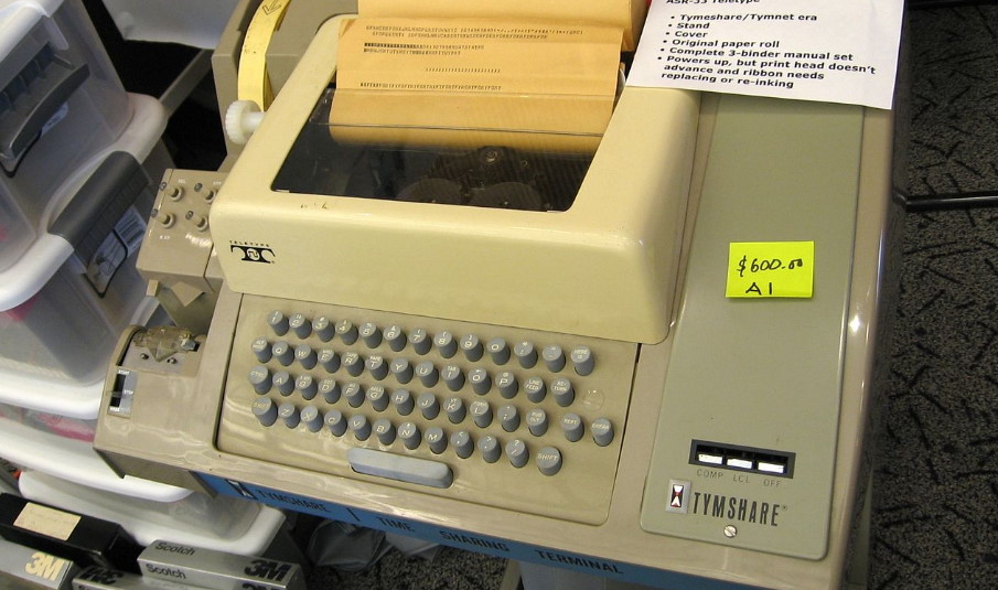 Art Schreibmaschine, die Lochstreifen stanzte und lesen konnte, die berühmte allgegenwärtige Teletype. Ursprünglich diente sie