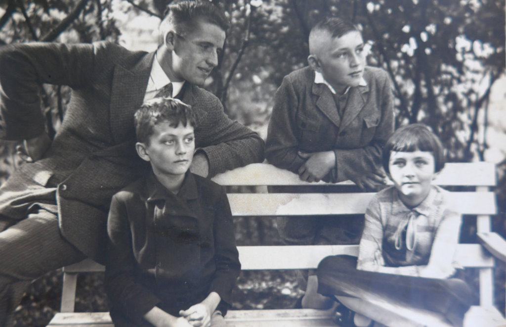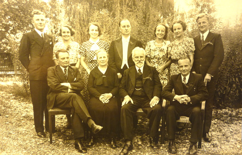 Vorne von links: Der bewunderte 'Lebemann' Rudolf, Mutter Clothilde, Vater Rudolf und Johann