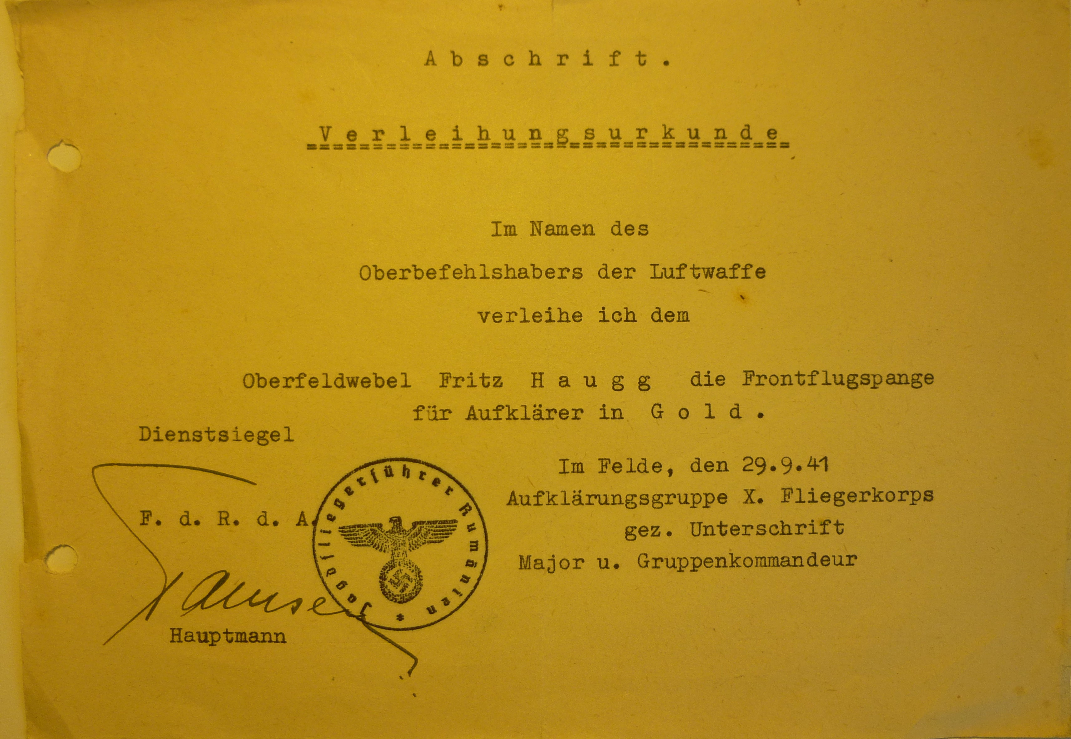 Verleihung der Frontflugspange in Gold (Afrikafeldzug) nach 110 Einsätzen