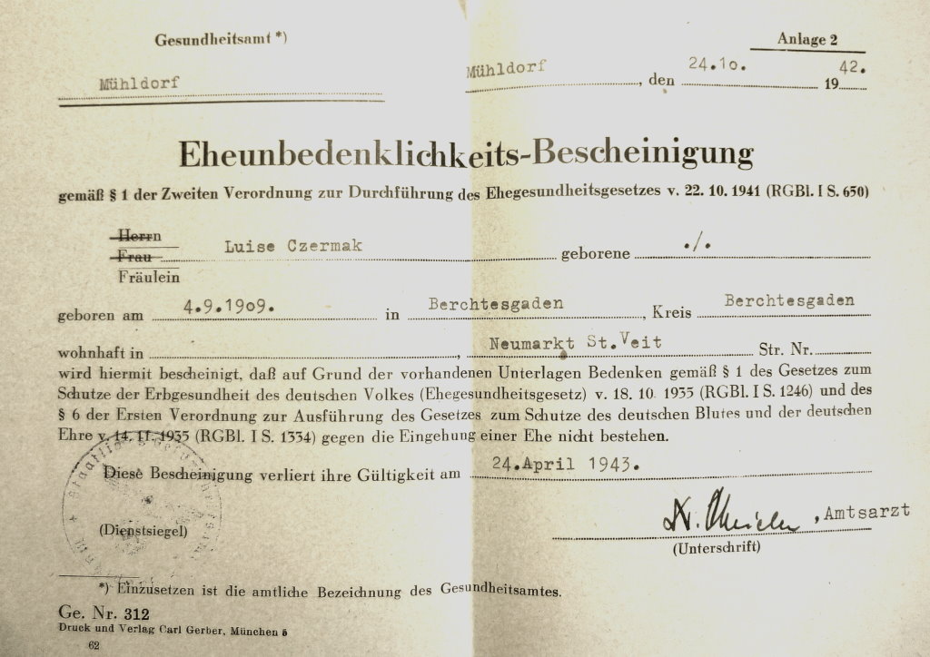 Auszug aus dem Fragebogen der US - Besatzung in Oberbayern zur 'Entnazifizierung'