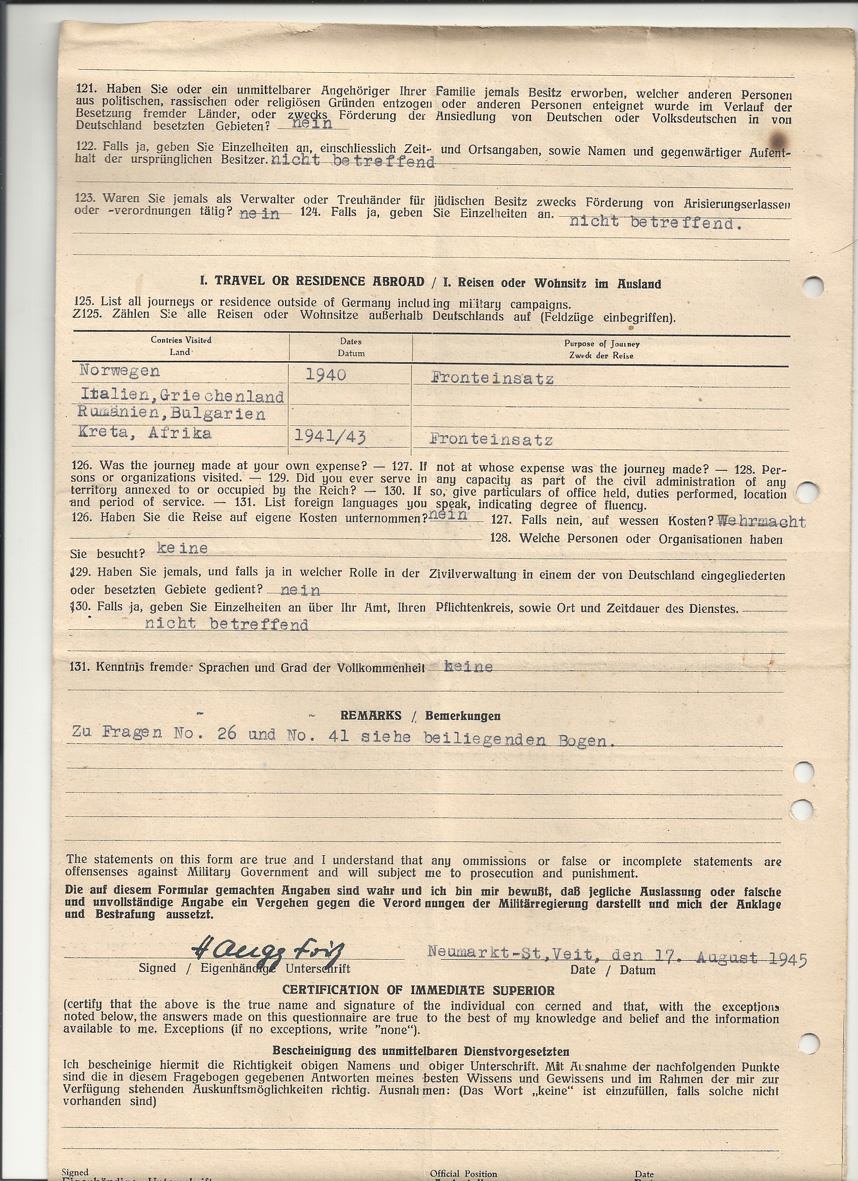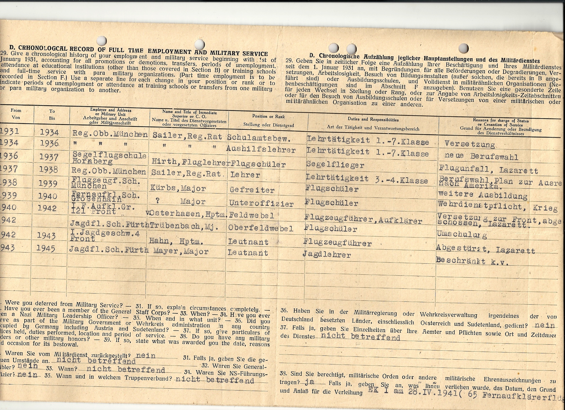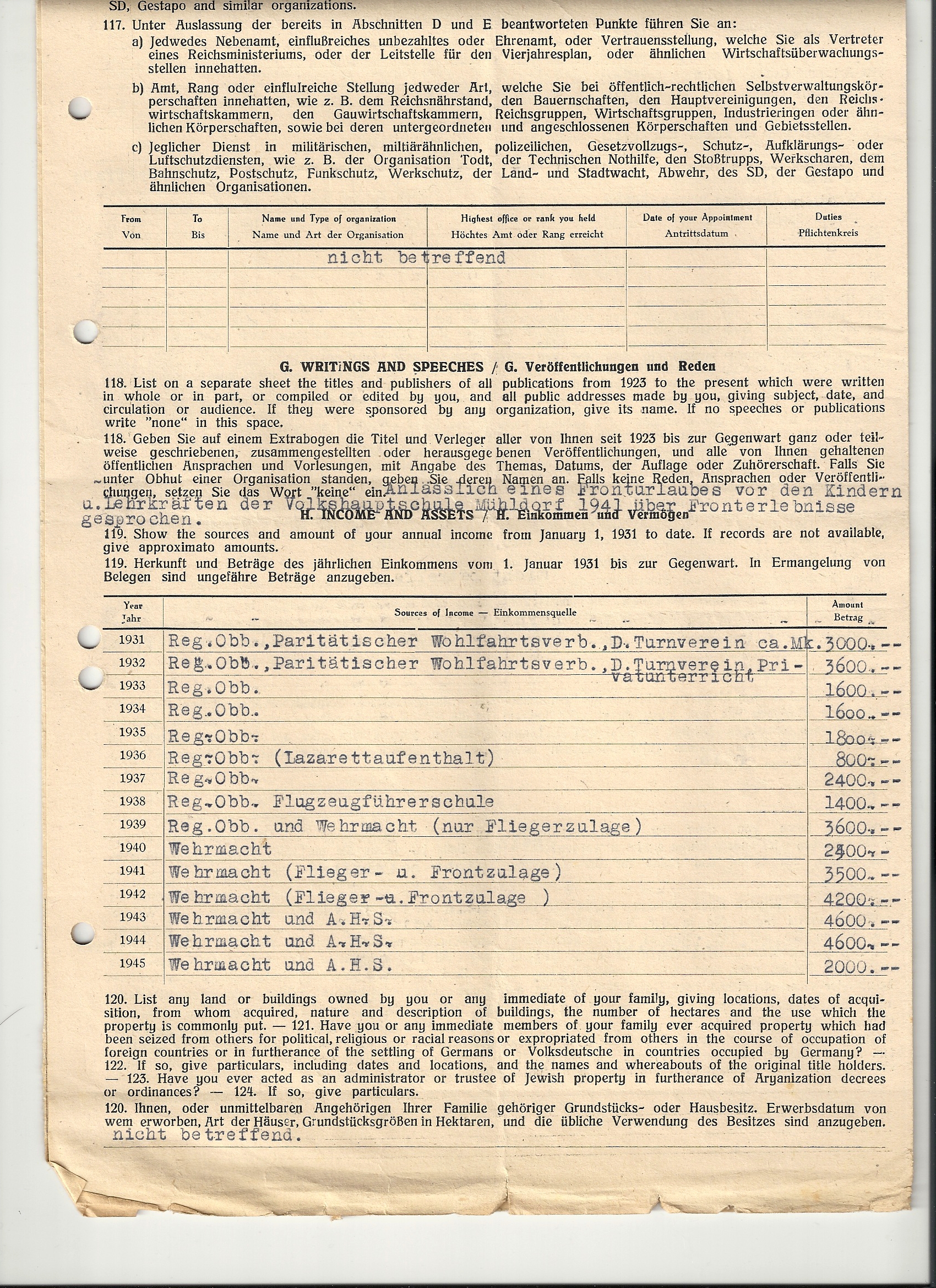 Ein weiterer Auszug aus dem Fragebogen der US - Besatzung in Oberbayern zur 'Entnazifizierung'